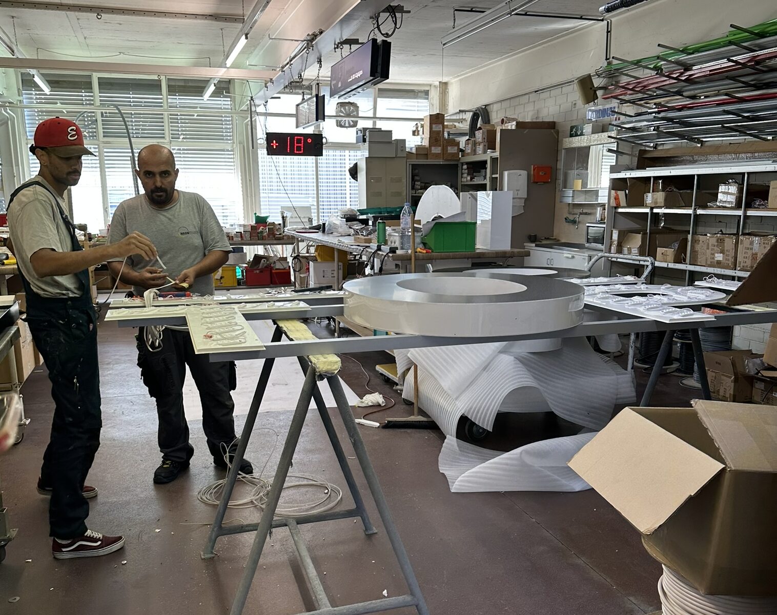 Zum Rebranding gehören neben neuen Drucksachen und der Webseite auch sichtbare Veränderungen an unserem Haus. Besonders freut uns die neue Leuchtschrift beim Haupteingang, die nun weithin sichtbar ist. Bevor die Installation beginnen konnte, war eine Bewilligung der Gemeinde Pratteln notwendig – nach deren Freigabe wurde die Leuchtschrift montiert und sorgt nun für einen modernen, einladenden ersten Eindruck.