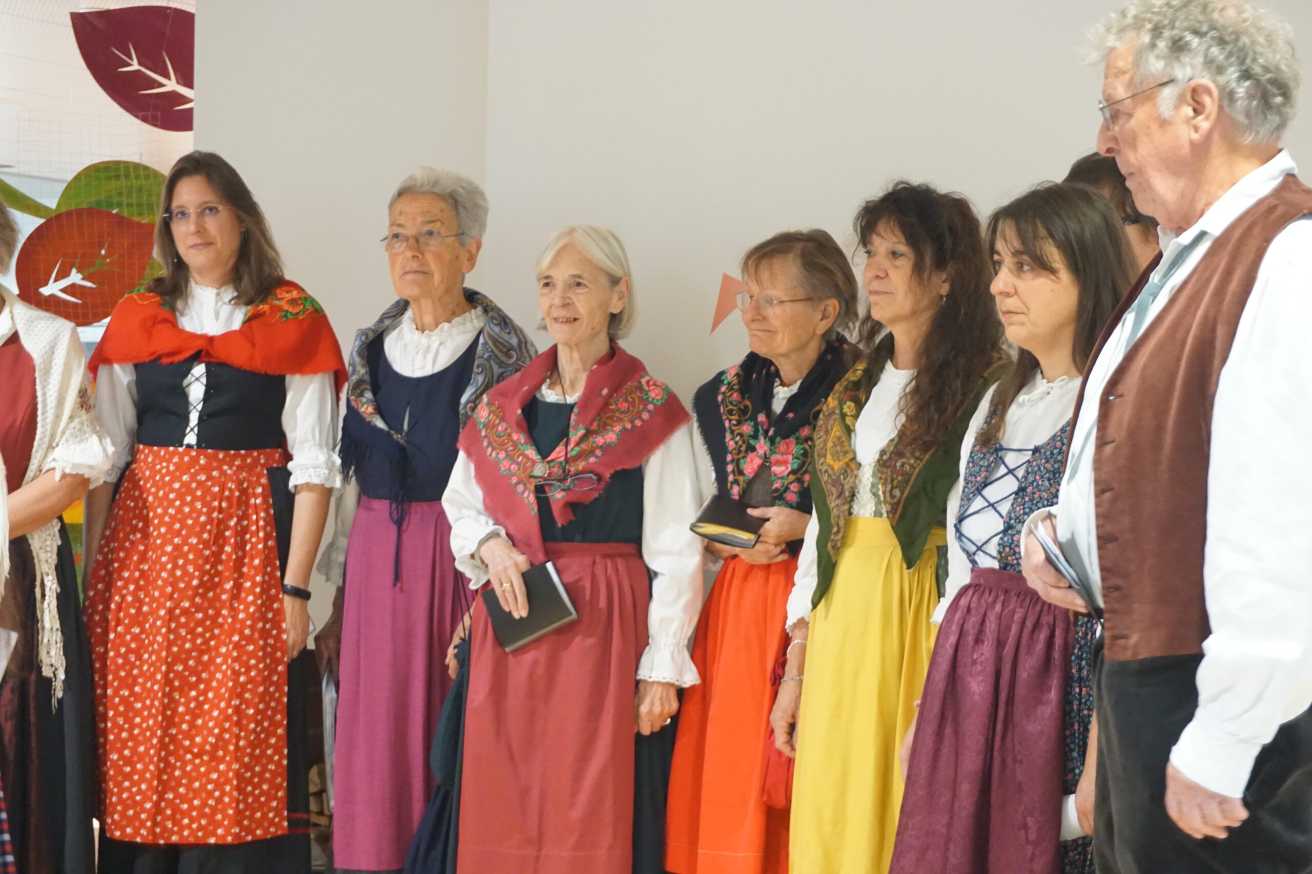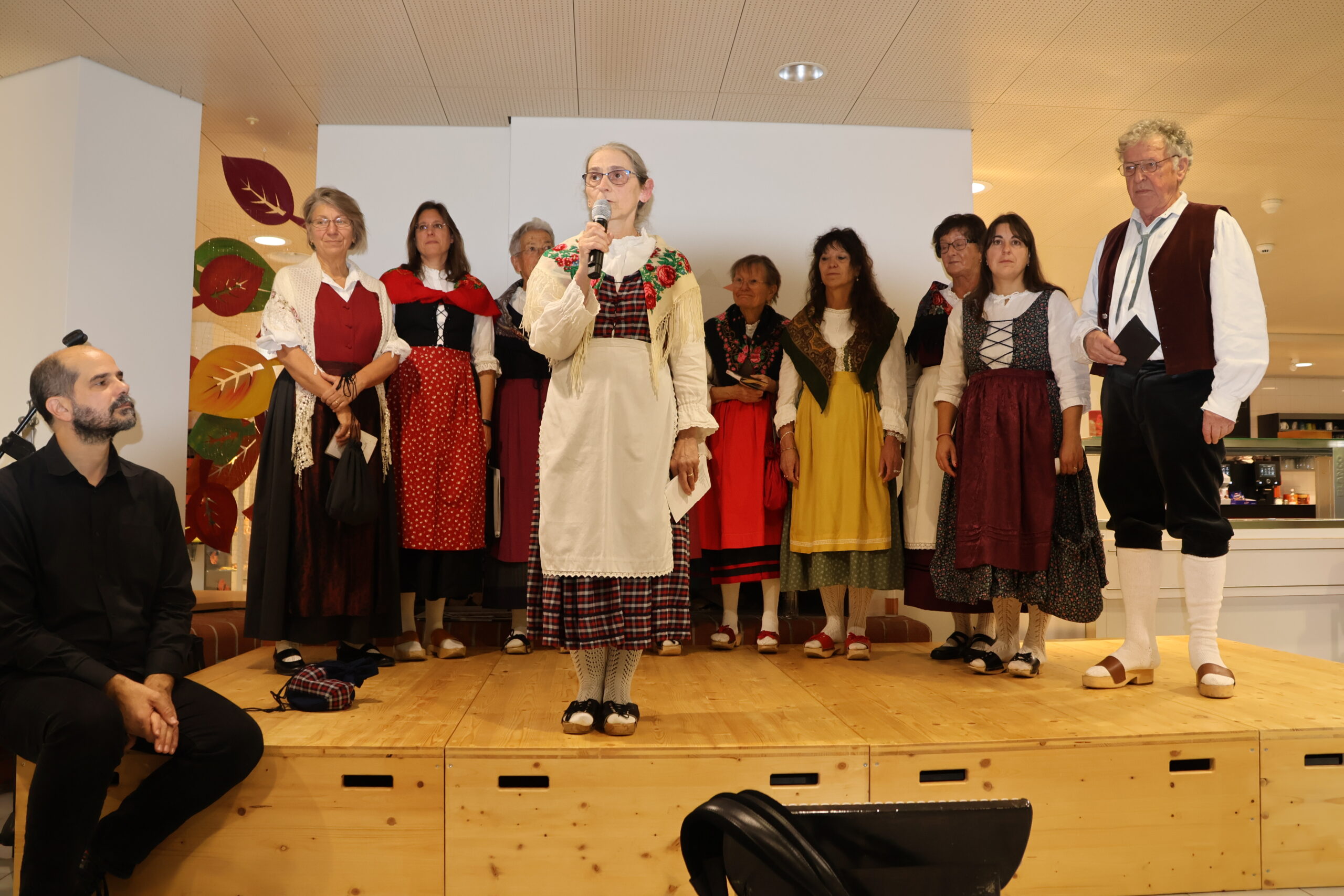 Ein besonderer Blickfang waren die traditionellen Tessiner Trachten des Chors. Die Frauen trugen Trachten aus verschiedenen Regionen des Tessins, teils typische Arbeitskleidung, teils reich ausgestattete Festtagstrachten. Die Männer präsentierten die traditionellen Hirten Trachten, was dem Auftritt eine authentische und liebevolle Note verlieh.