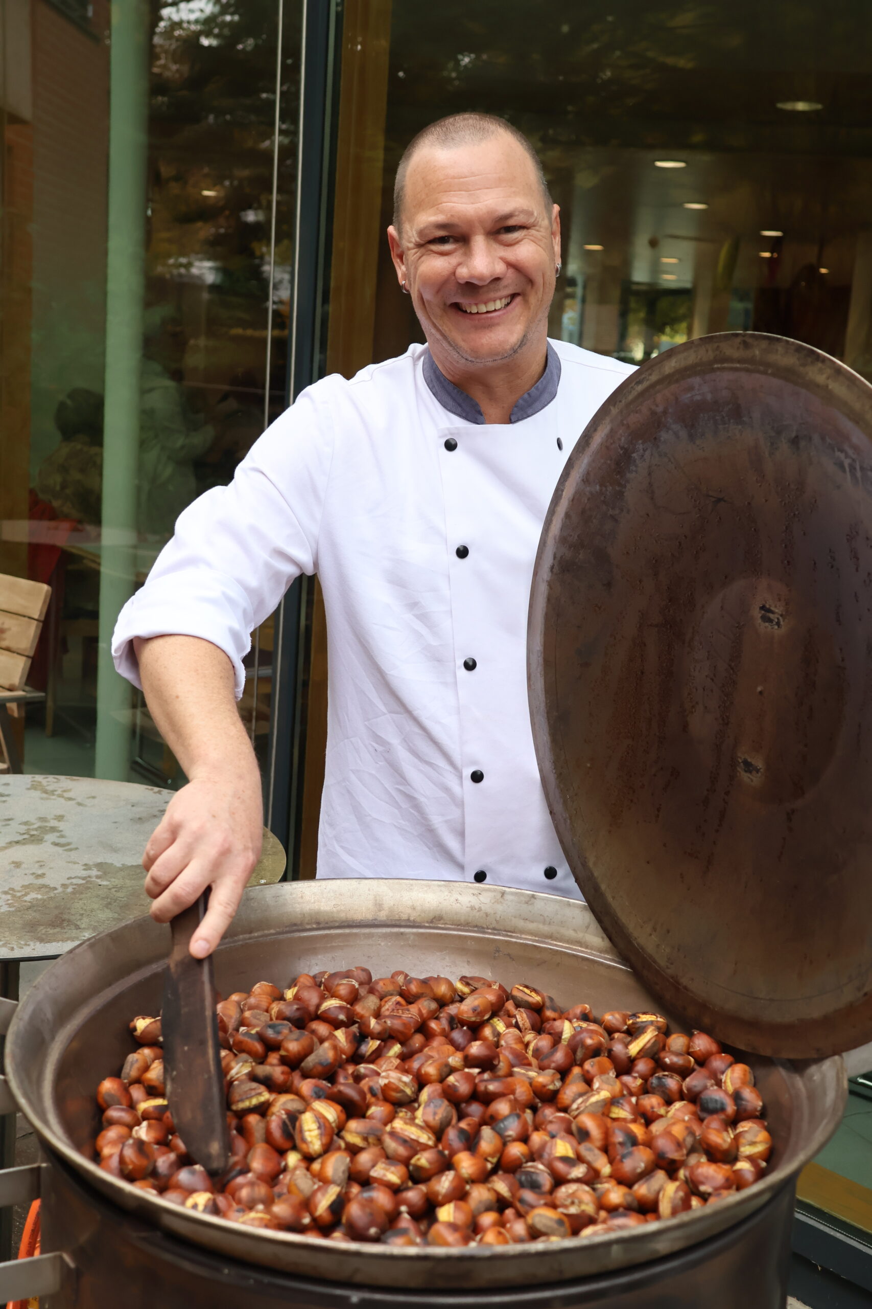 Unser Küchenchef, Christian Diriwächter, verwöhnte unsere Gäste mit frisch gerösteten Marroni direkt aus dem Marroniofen. Dazu gab es Vermicelles, Marroni Kuchen, frische Trauben, Traubensaft und Most. Die herbstlichen Düfte und die feinen Spezialitäten sorgten für eine warme, gemütliche Atmosphäre.