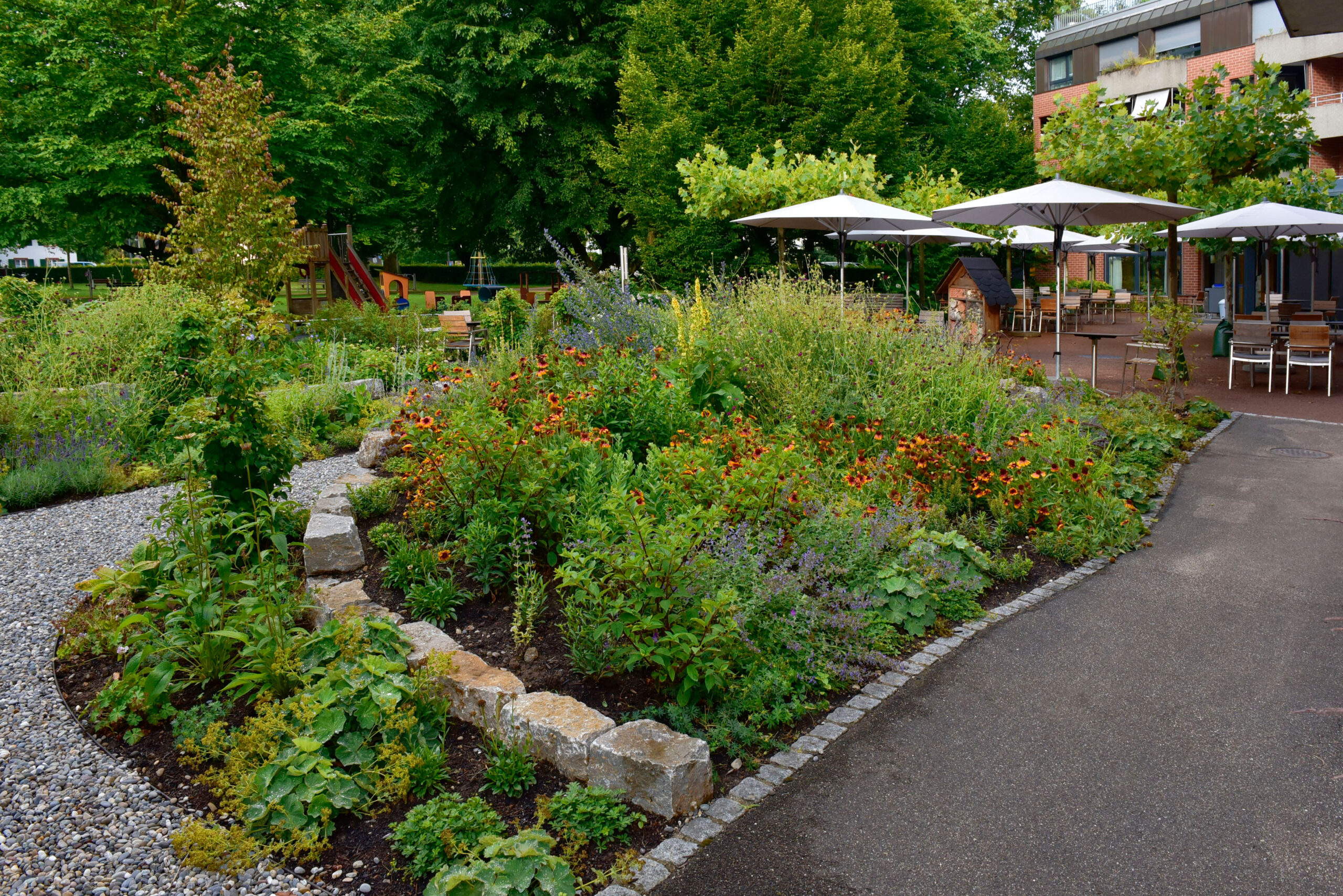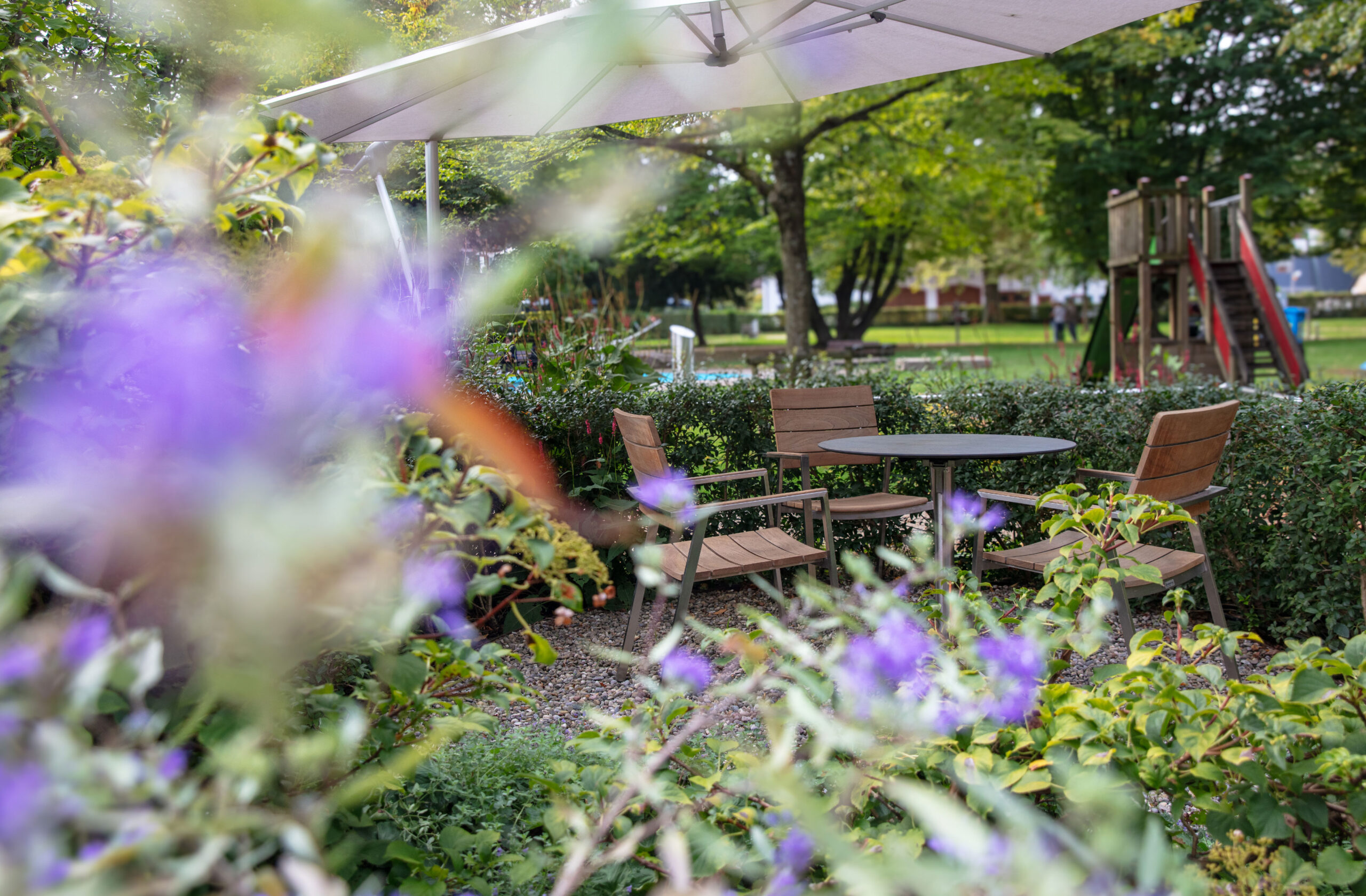 Entdecken Sie unseren Traumgarten mit vielen schönen Blumen, einem Kleintiergehege und einem Hochbeet mit frischen Kräutern. Ein idealer Treffpunkt, um die Tiere zu beobachten und sich mit anderen zu treffen.
