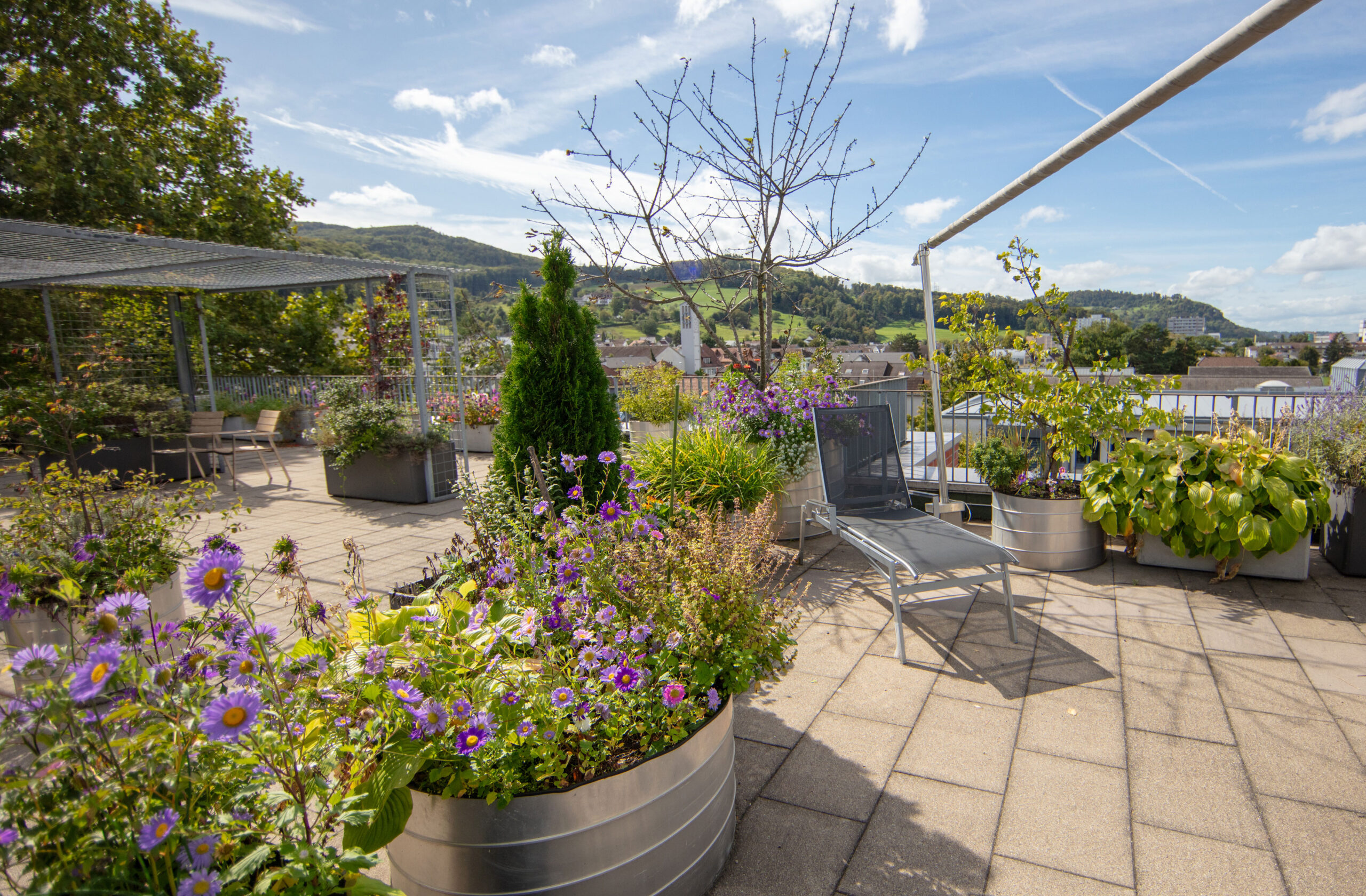 Die überschaubare Abteilung wird von unserem engagierten und fachkundigen Pflegeteam mit viel Herzlichkeit in familiärer Atmosphäre betreut. Weitläufige Gänge laden zu kleinen Spaziergängen ein, und auf der grosszügigen Terrasse geniessen unsere Bewohnerinnen und Bewohner die fantastische Aussicht über die Dächer von Pratteln.